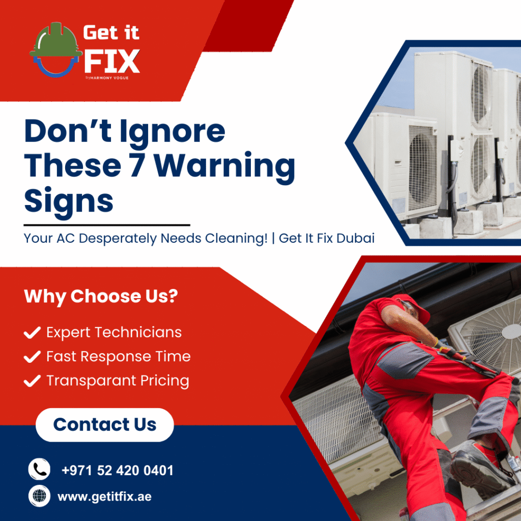 Don’t Ignore These 7 Warning Signs – Your AC Desperately Needs Cleaning! | Get It Fix Dubai